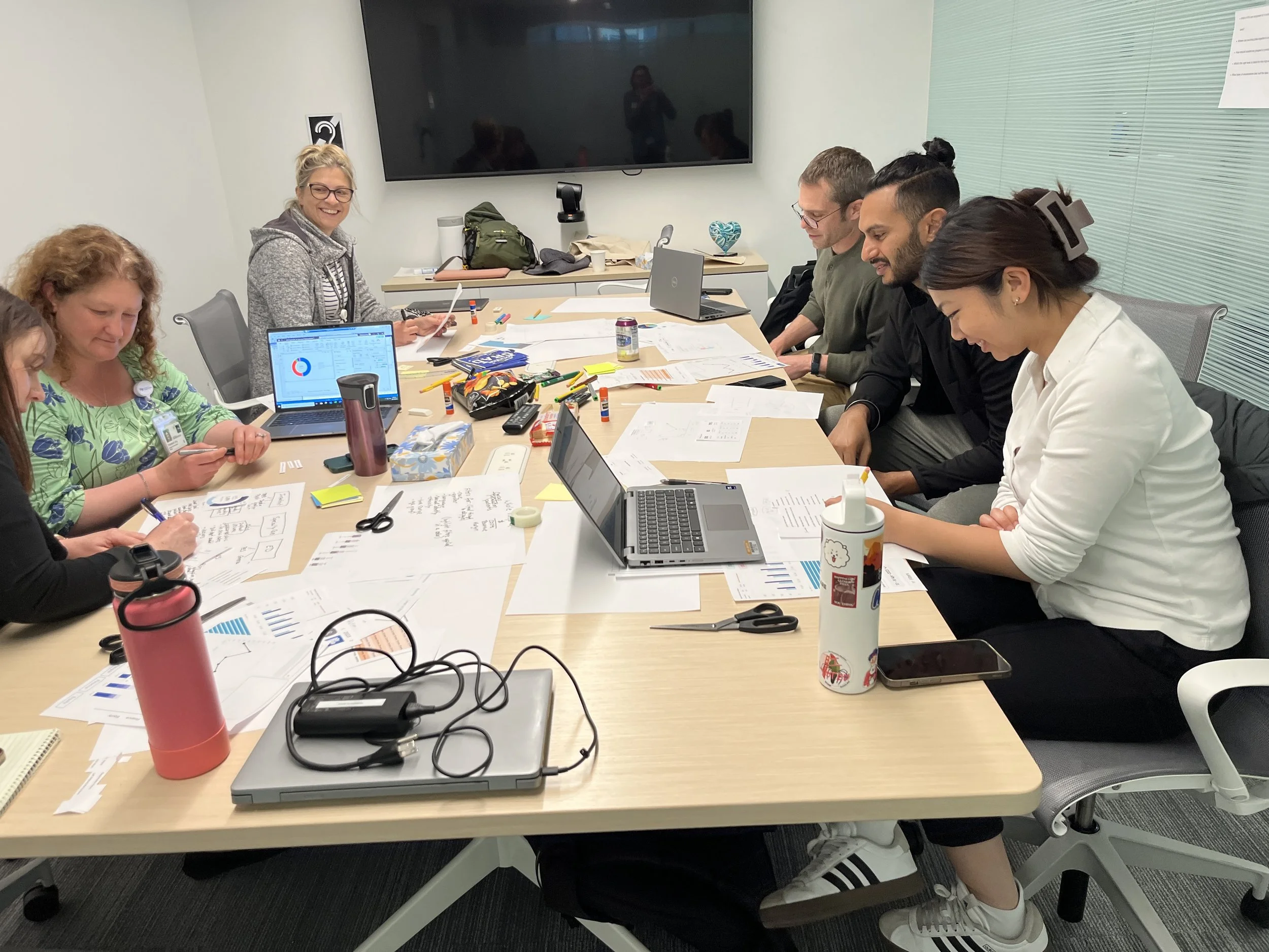 To align stakeholders and ground the work in real operational needs, a broad cross-section of hospital partners were engaged—including clinicians, department leaders, operational managers, the Equity Council, Kaizen Promotion Office, the Patient Safety Department, and Quality Improvement. Through collaborative workshops, we built a shared understanding of goals, constraints, and user needs to support purposeful, outcome-driven design. Below are a few of the exercises we used to get there.