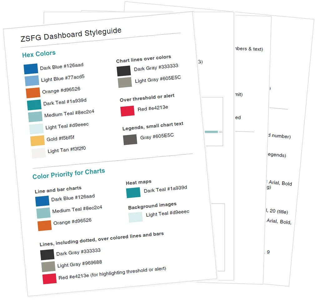 To ensure long-term consistency and usability, I created a comprehensive style guide and branding assets for team members developing the Power BI site and integrating data, providing clear guidance to maintain a visually cohesive and user-friendly dashboard experience.